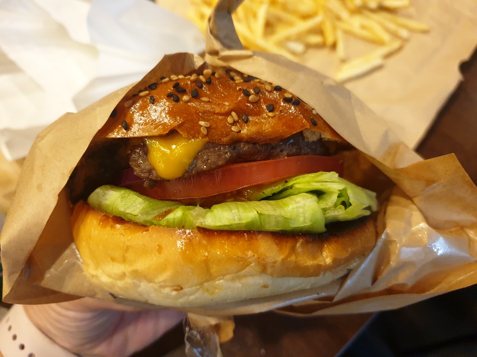 엉거주춤 기다리고 있는걸 보면 말씀 해 주실 법도 한데... 기다리는 시간이 조금 민망했다는 느낌을 받으며 구매 해 온 햄버거를 먹어보겠습니다!!!!!