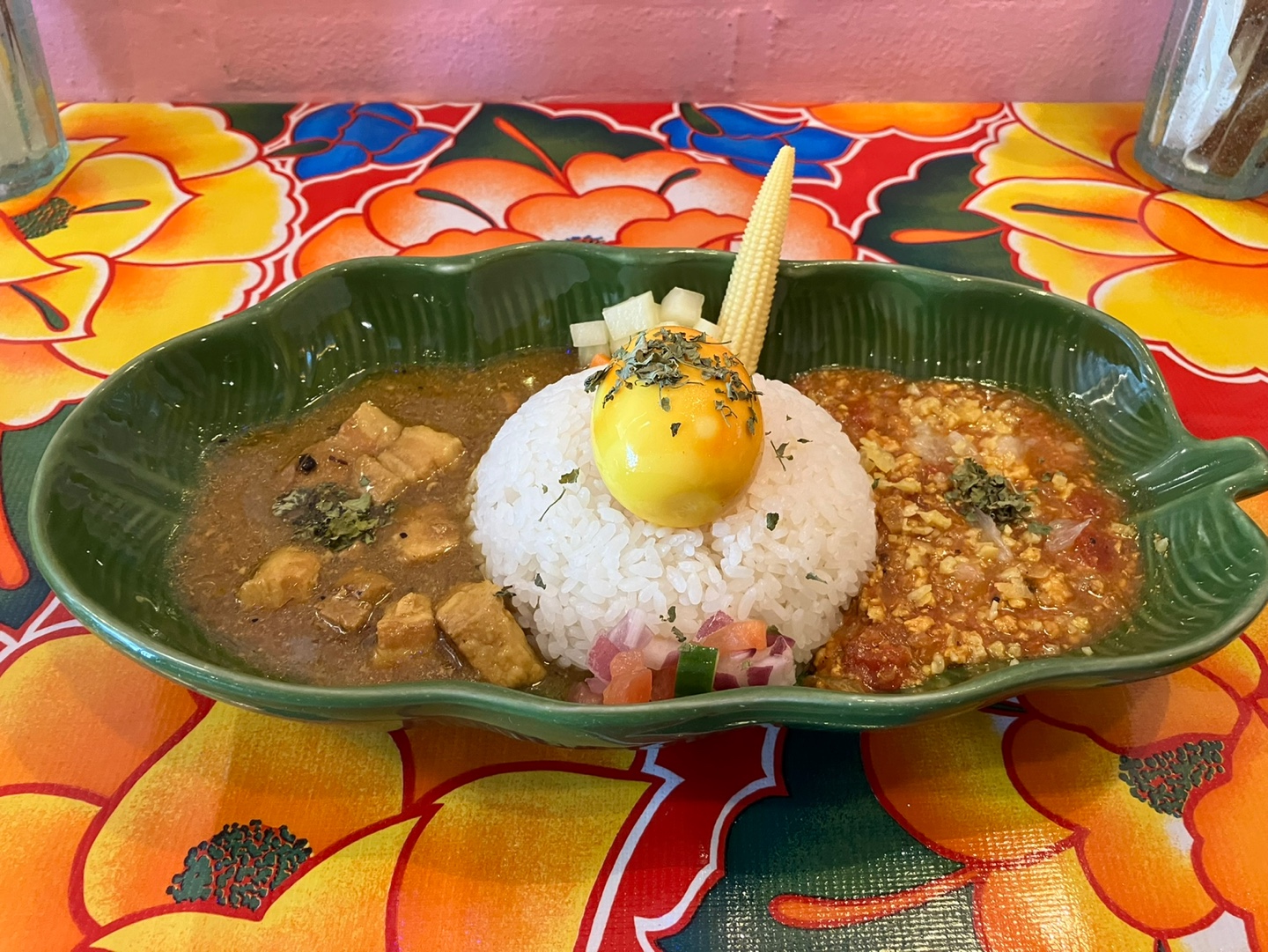 카레를 1종류만 선택해서 먹는 방법과 2종류를 선택해서 반반 먹는 방법을 고를 수 있었는데요.