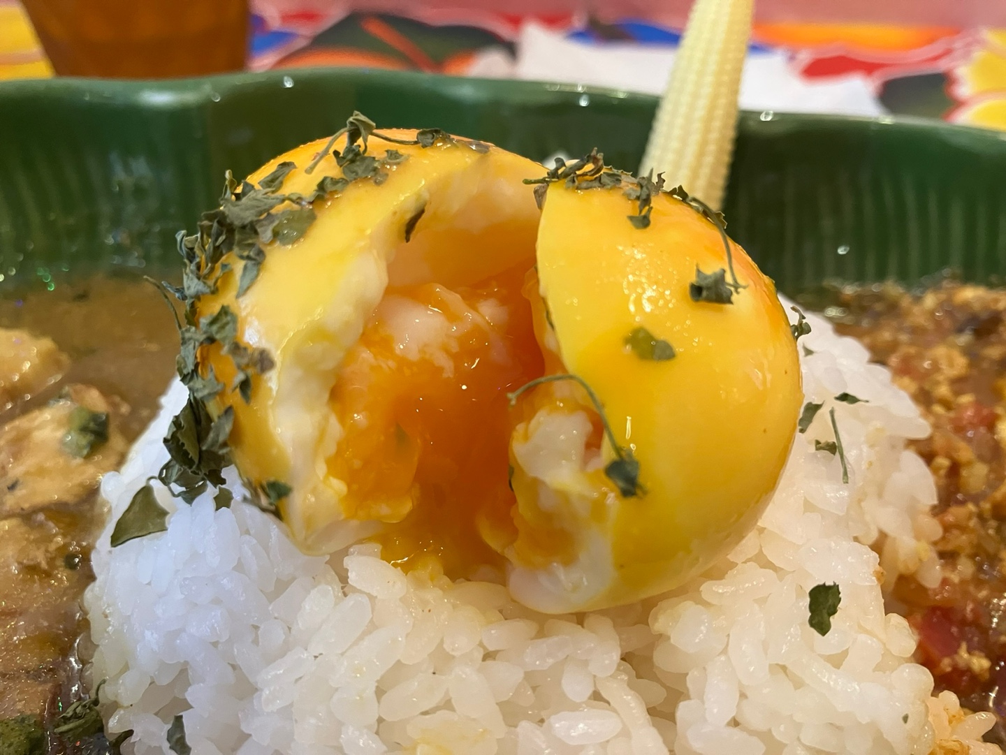 위에 올려져 있는 계란도 궁금해서 스파이스 니타마고를 토핑으로 올려서 1200엔이었어요:)