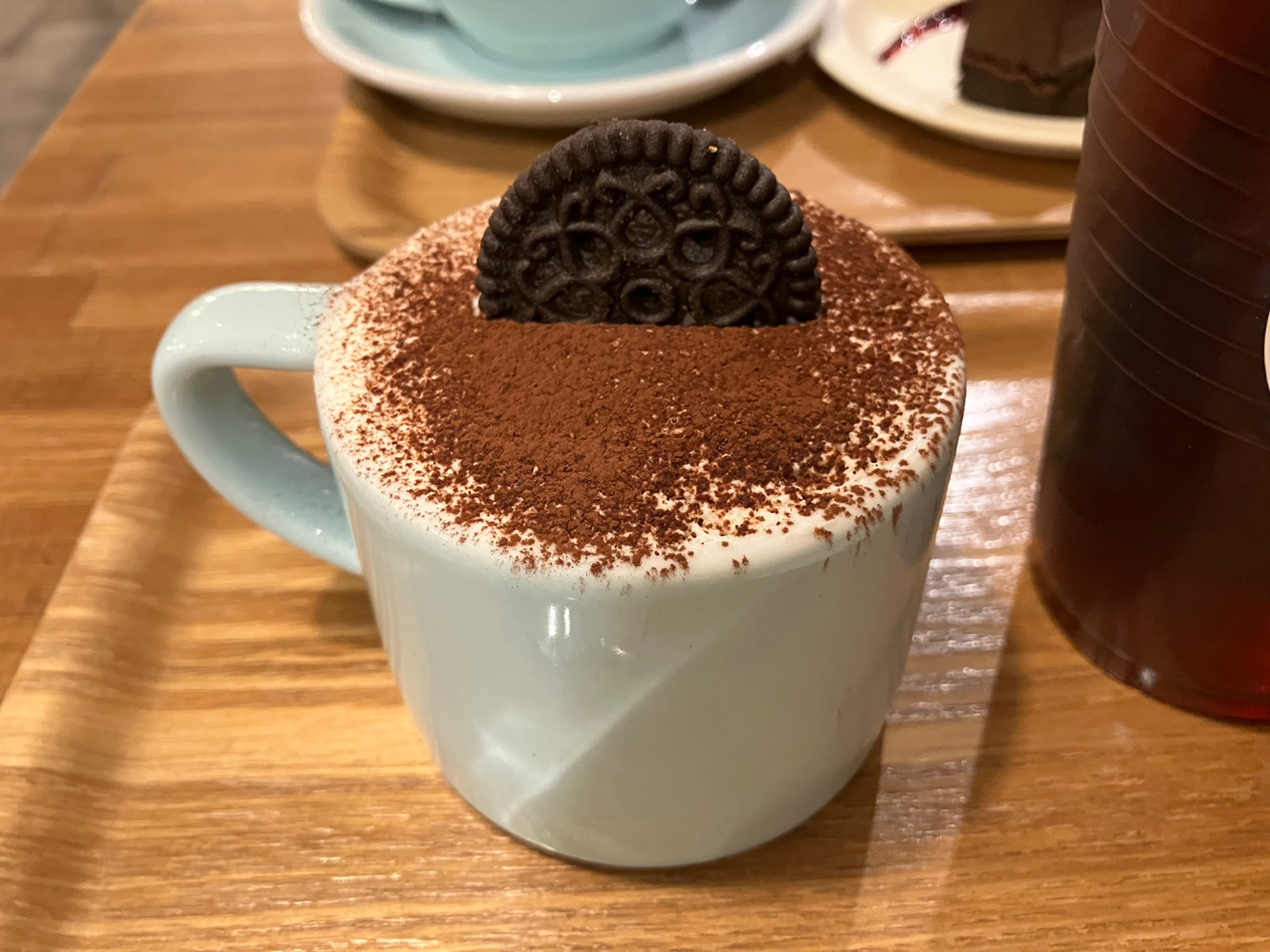 뭘 주문할까 고민하다 저는 아이스 오리지널 브랜드 커피 L사이즈와 티라미스를,