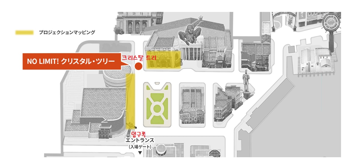 - 프로젝션맵핑을 이용한 쇼 (지도상에 나와있는 노란색 부분)