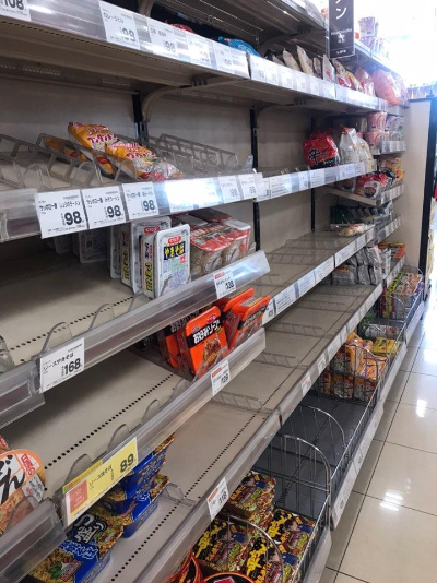 긴금사태선언이라는 말이 나오자마자 아직 시행 전이었음에도 불구하고 마트에는 즉석식품, 냉동식품, 휴지 등이 품절이 있었습니다.