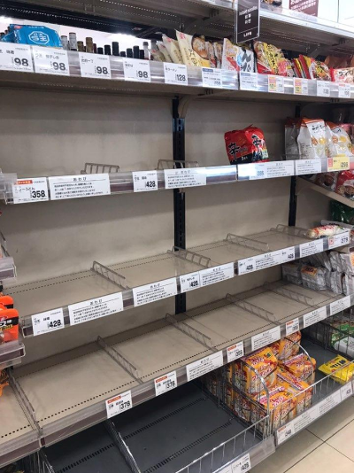 아래 사진부터는 발표 전후에 마트 식품, 휴지가 대란이었던 날의 모습이 됩니다.