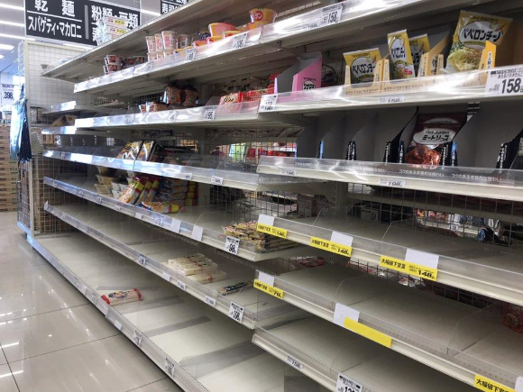 긴금사태선언이라는 말이 나오자마자 아직 시행 전이었음에도 불구하고 마트에는 즉석식품, 냉동식품, 휴지 등이 품절이 있었습니다.