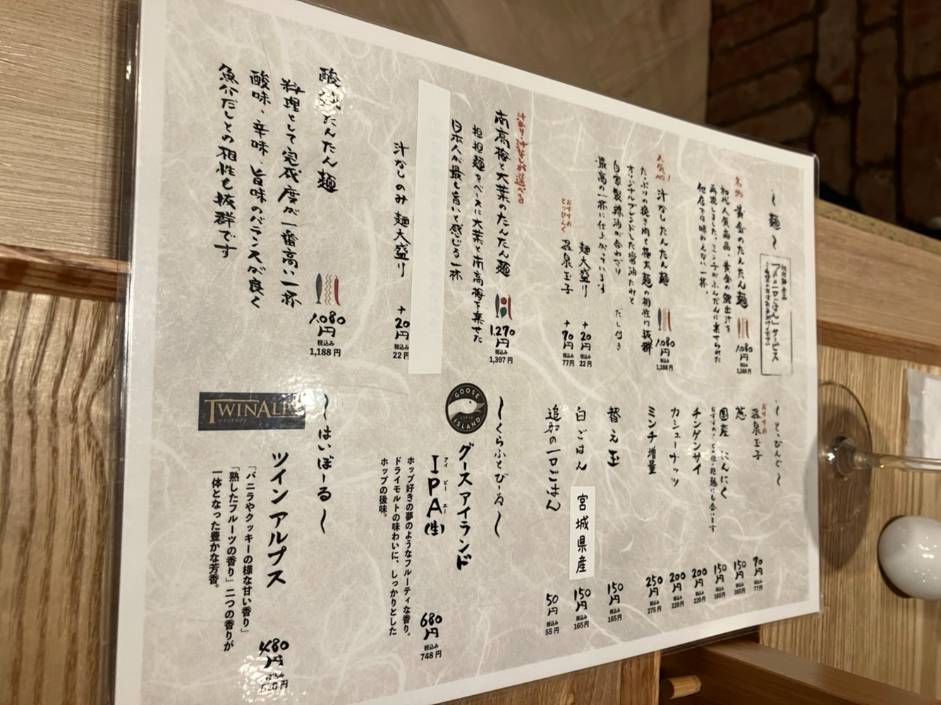 윗줄은 면 아랫쪽은 토핑과 크래프트 맥주, 하이볼로 굉장히 단촐한 메뉴판이었습니다.