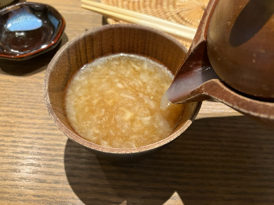 소바를 찍어먹었던 쯔유에 뽀~얀 소바유를 넣어주고 호로록 호로록~!