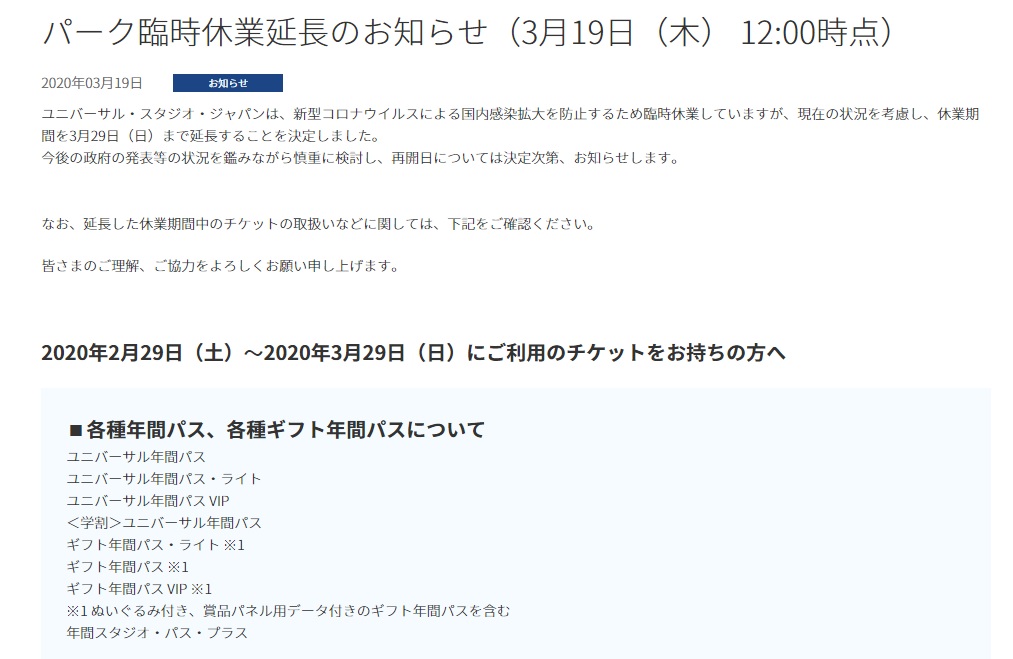3월 29일까지 연장이 되었으며, 연간패스와 기프트 연간패스를 가지고 계신 분에 대한 대응이 나와있었습니다.