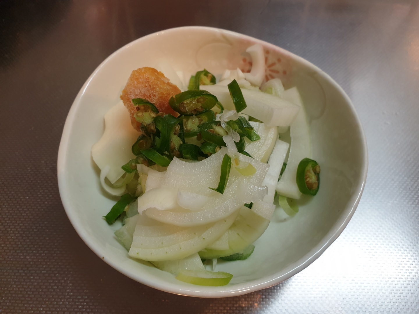 썬 재료를 오목한 그릇에 넣어줍니다.