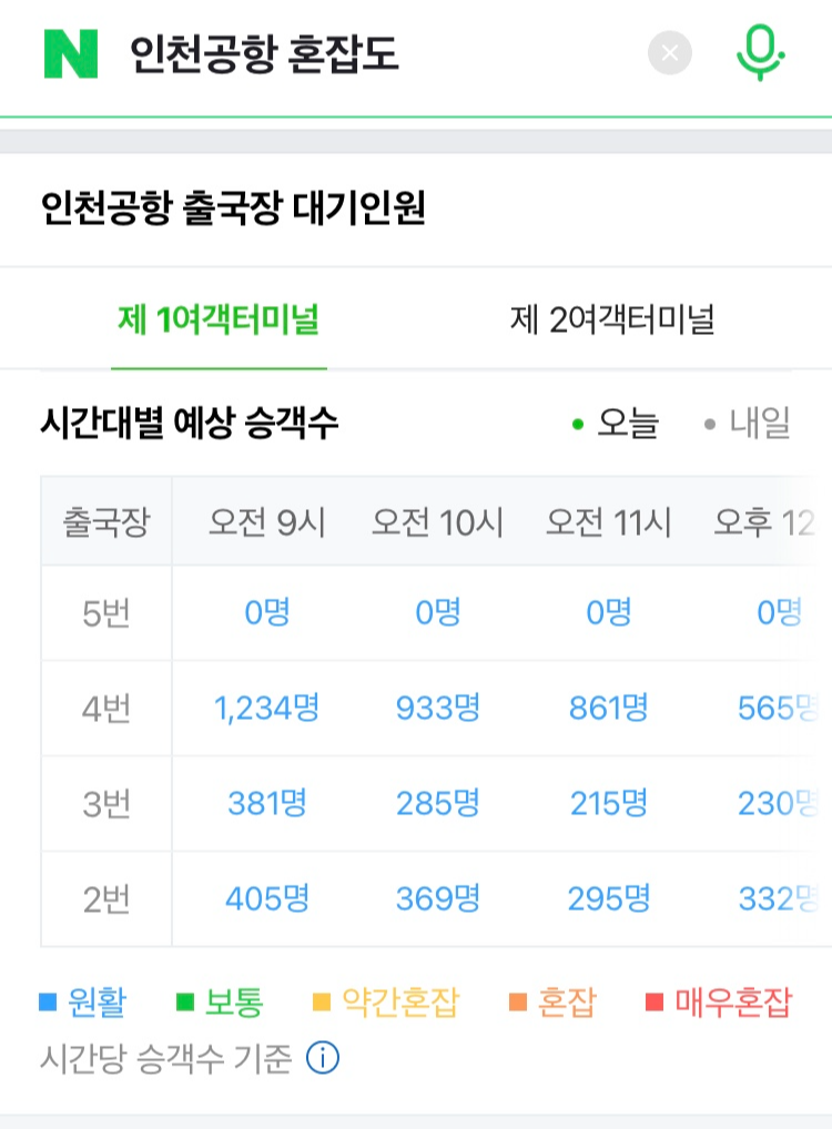 검색창 '인천공항 혼잡도'