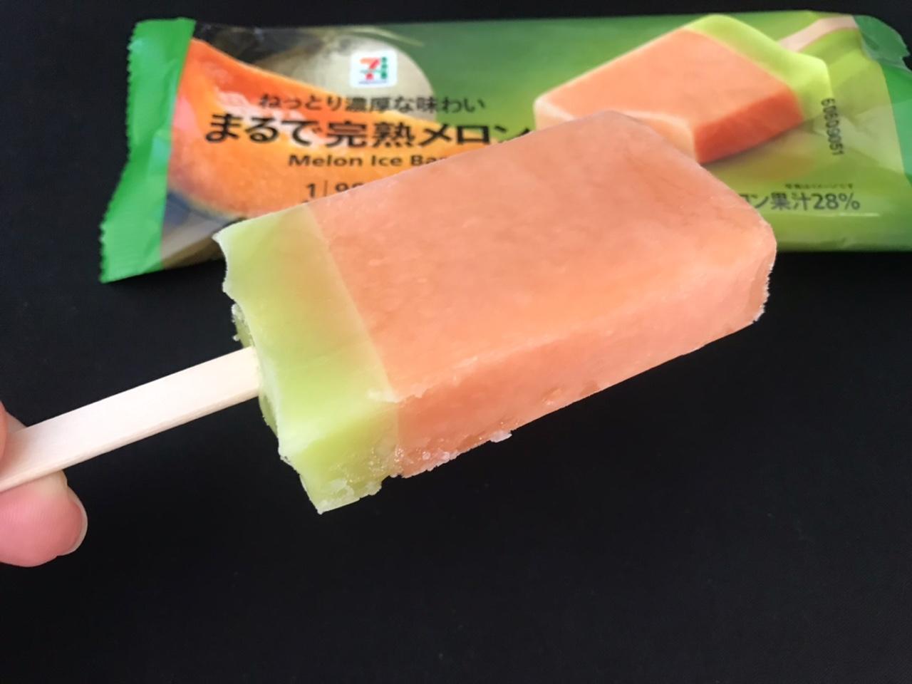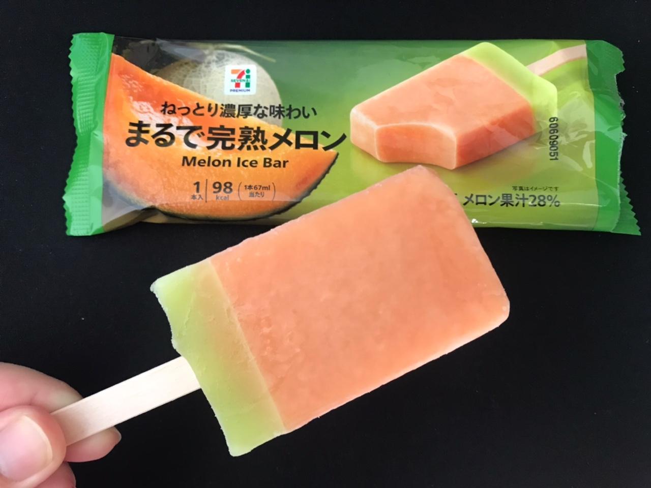 낮 기온이 29-30도를 넘으며 날이 점점 더워지고 있죠. 오사카는 아직 장마가 끝나지 않았는데 생각 보다 비가 많이 내리지 않아서 이대로 더운 여름이 시작되는건 아닐지 걱정이 되는데요. 날이 더워지다보니 세븐일레븐 에서 메론 아이스크림 (まるで完熟メロン)을 구매하게 되었어요.