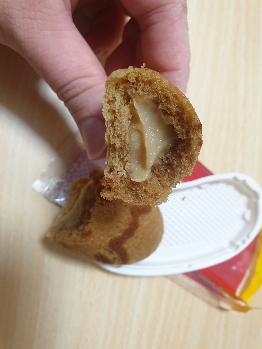 안에는 캬라멜 마끼아또 맛 크림이 가득 들어가 있었습니다.