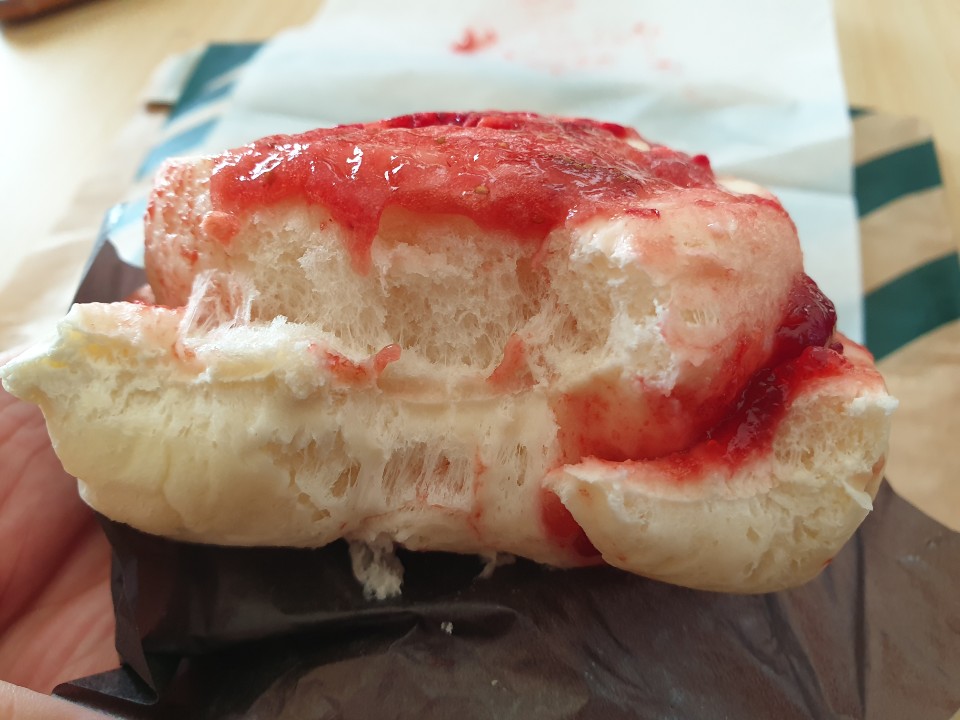 스트로베리 필링에는 라즈베리잼도 들어가 있다고 했는데 곳곳이 다 딸기라서 어느 곳을 먹어도 상큼 했습니다.