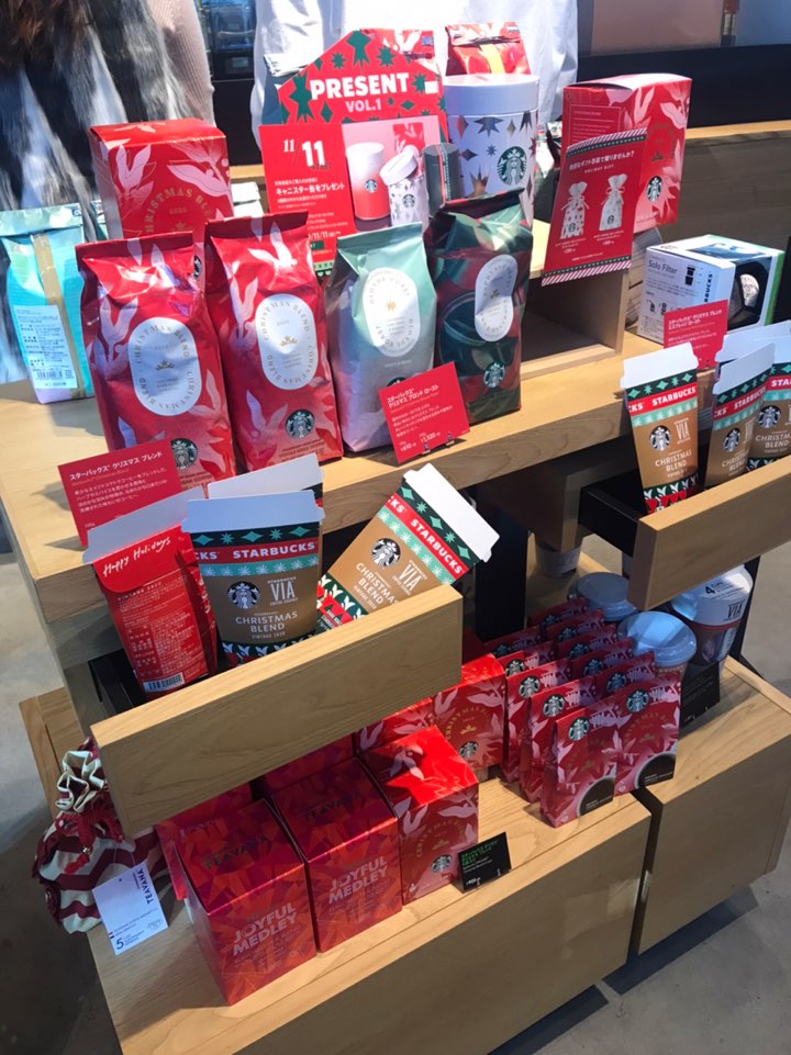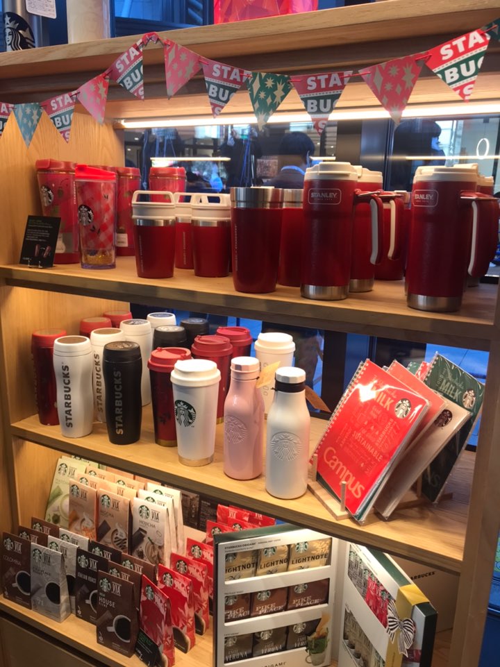 줄 서서 기다리는 동안 이번 크리스마스 제품들을 천천히 구경했습니다.