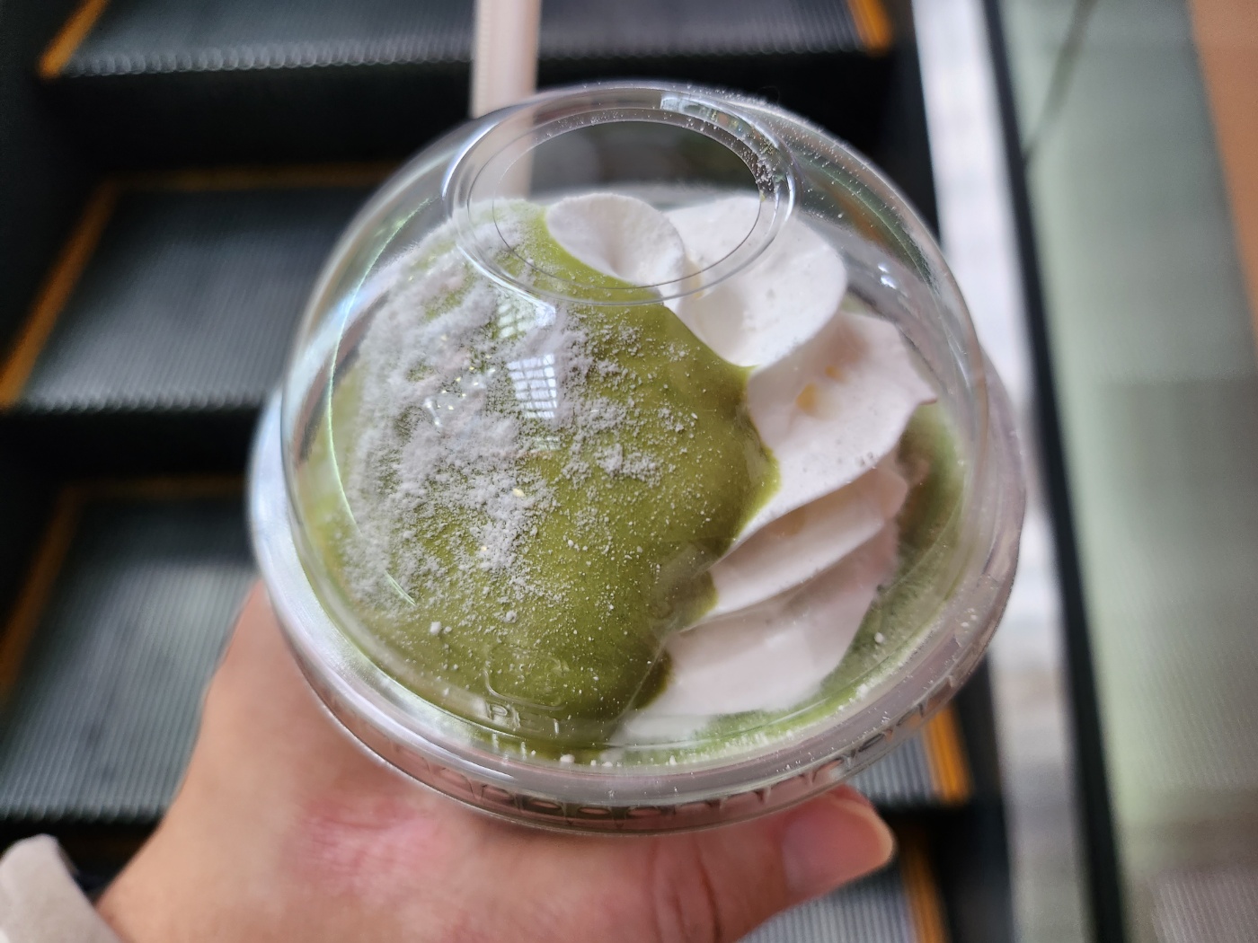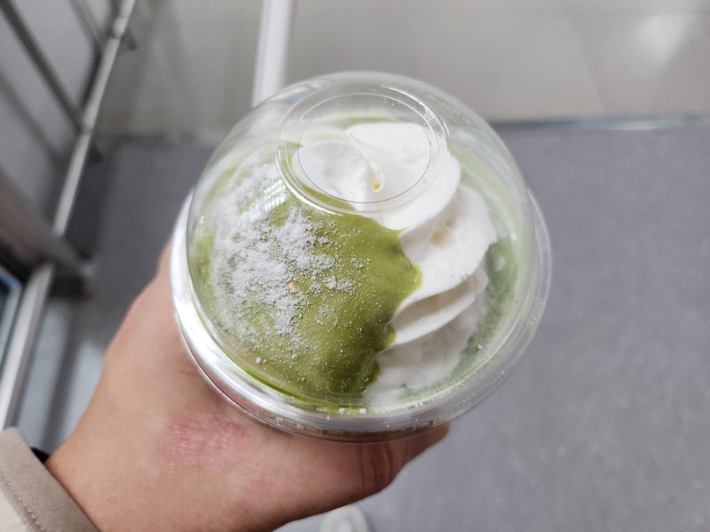 마지막에 생크림 위에 마차 무스를 쭉~ 짜주셨는데 마치 떡같이 올라가져 있었습니다.