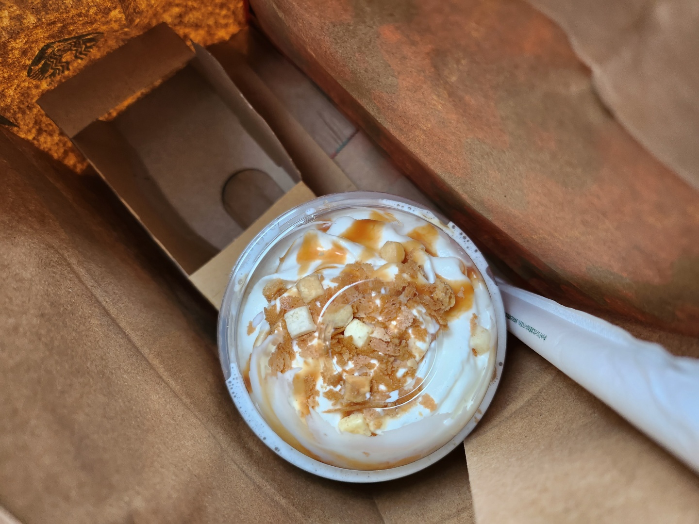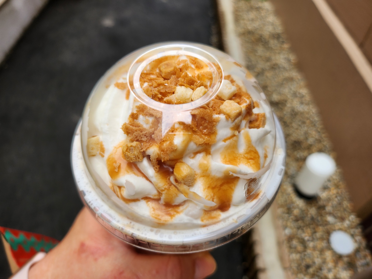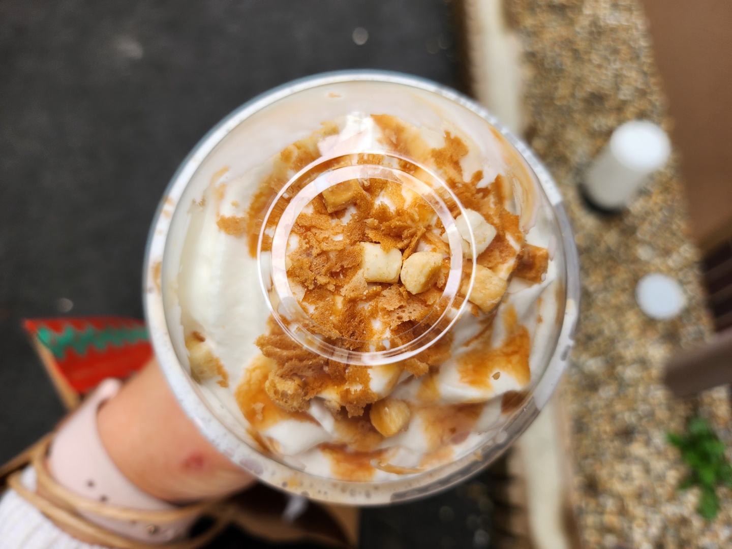음료자체에 커스터드 소스와 밀크가 들어가 있다보니 음료의 색 자체가 버터 캬라멜 느낌이 물씬 났습니다.