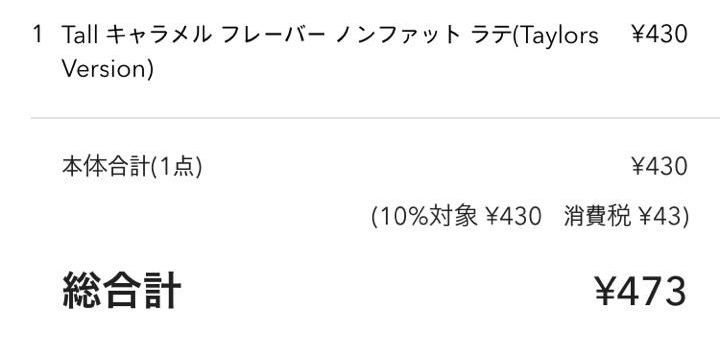 숏 사이즈는 너무 정없고(?) 톨 사이즈로 주문했습니다. 그래서 가격은 세금 포함 473엔이 나왔어요.