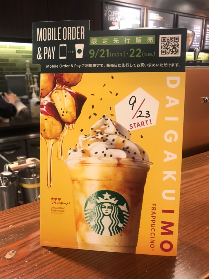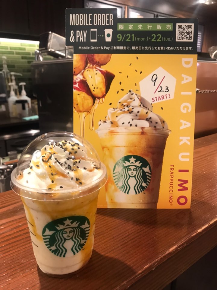 그 메뉴라 함은 고구마맛탕 프라푸치노 (大学芋プラペチーノ)인데요!