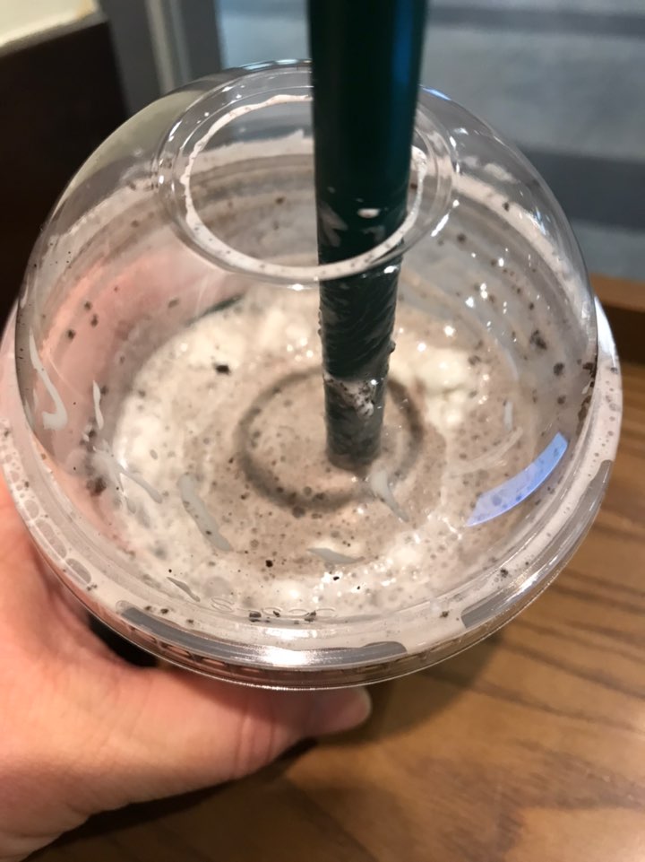 섞고 보니 크림때문에 확실이 음료 색은 조금 연해졌습니다.