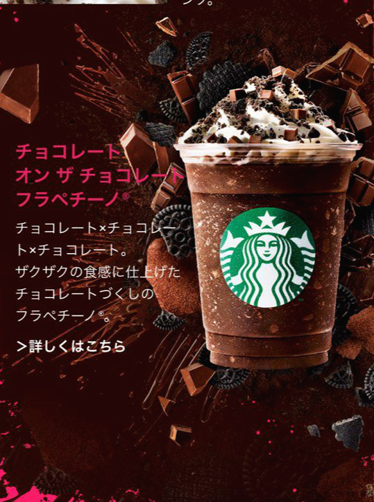 지난주에 새로 나온 일본 스타벅스, 초콜릿 온 더 초콜릿 프라푸치노(チョコレートオンザチョコレートプラペチーノ)