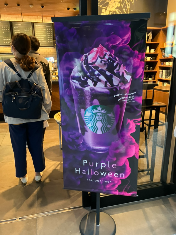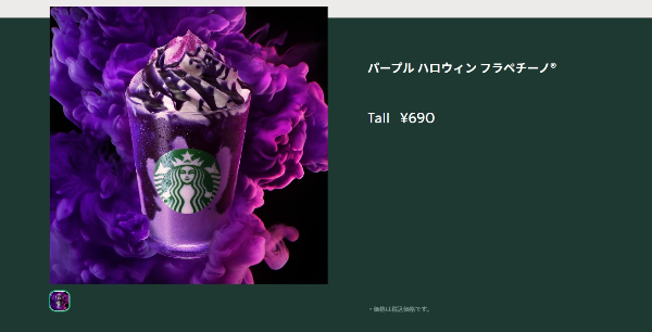 스타벅스 홈페이지에서 기재되어 있는 할로윈 한정 메뉴, 퍼플 할로윈 프라푸치노(パープルハロウィンプラペチーノ)!