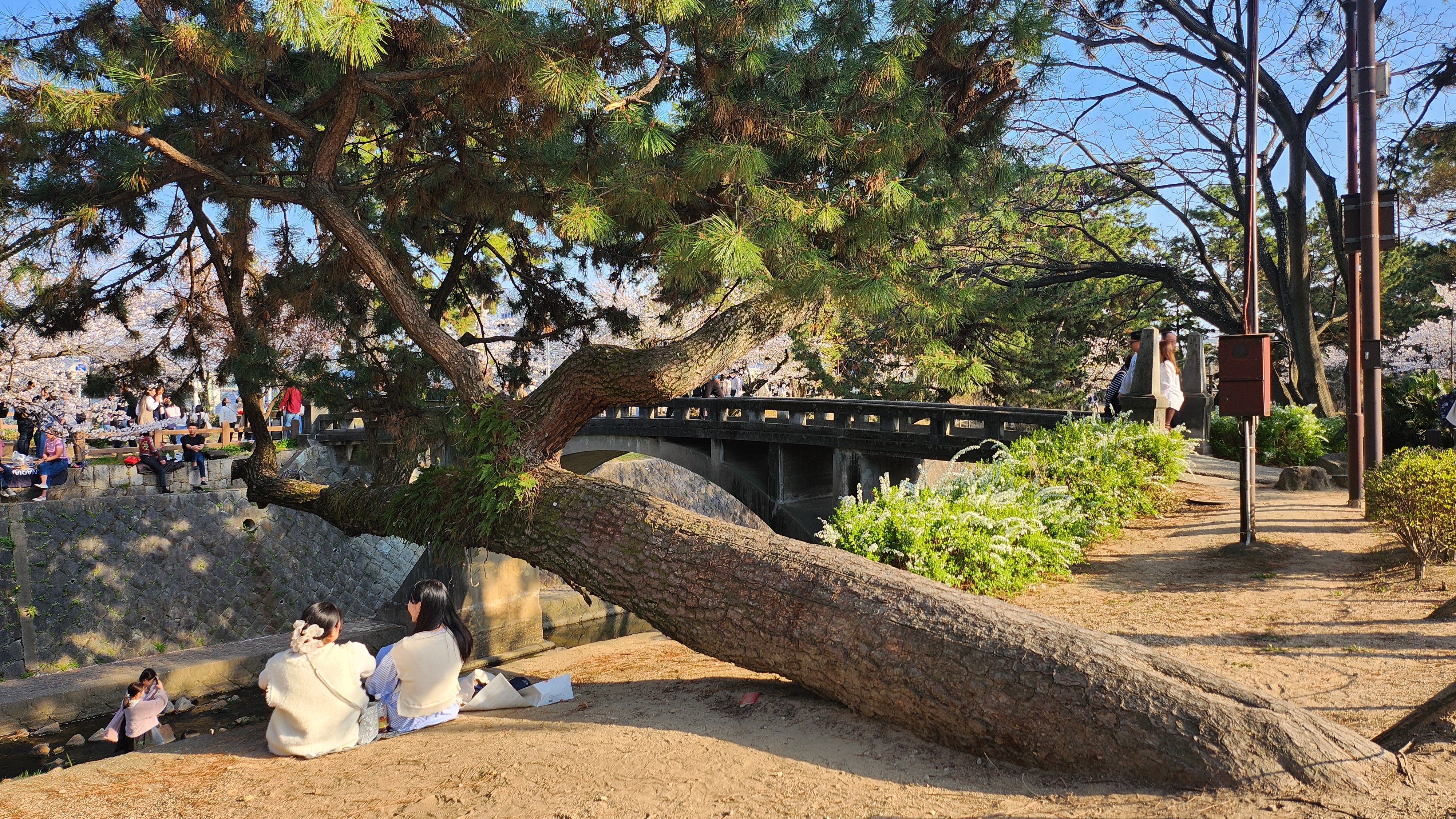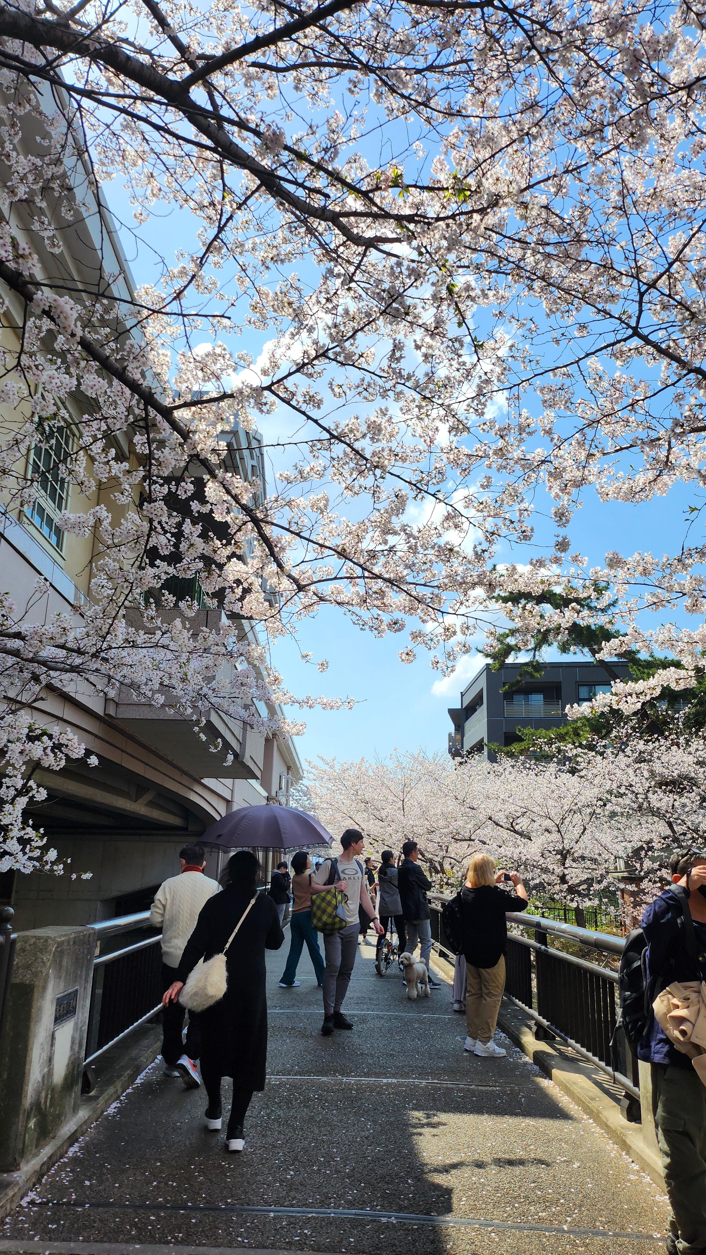 그 강을 따라 벚꽃이 피어 있어서 사람들이 많이 모이는 곳 중 하나입니다.