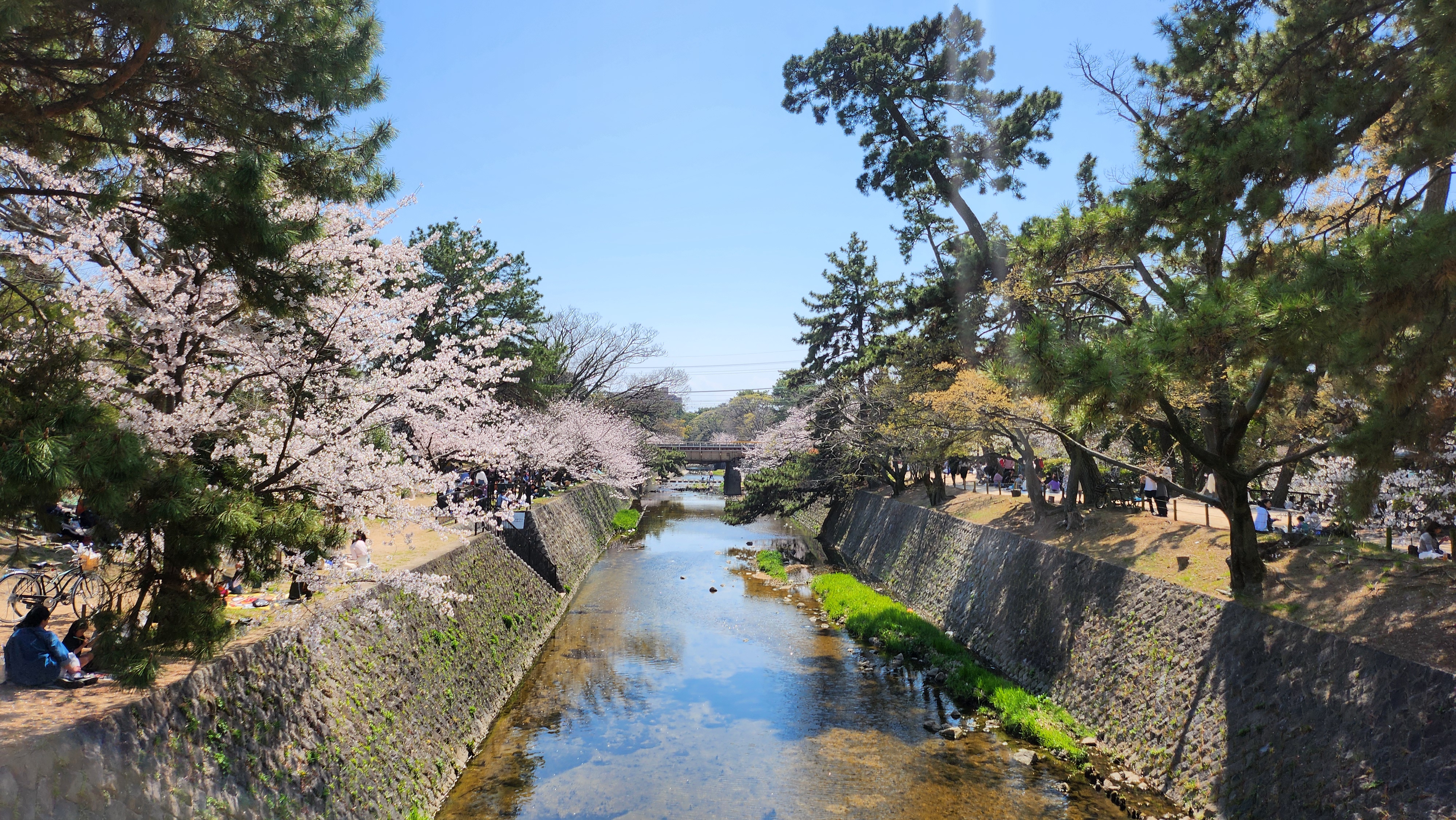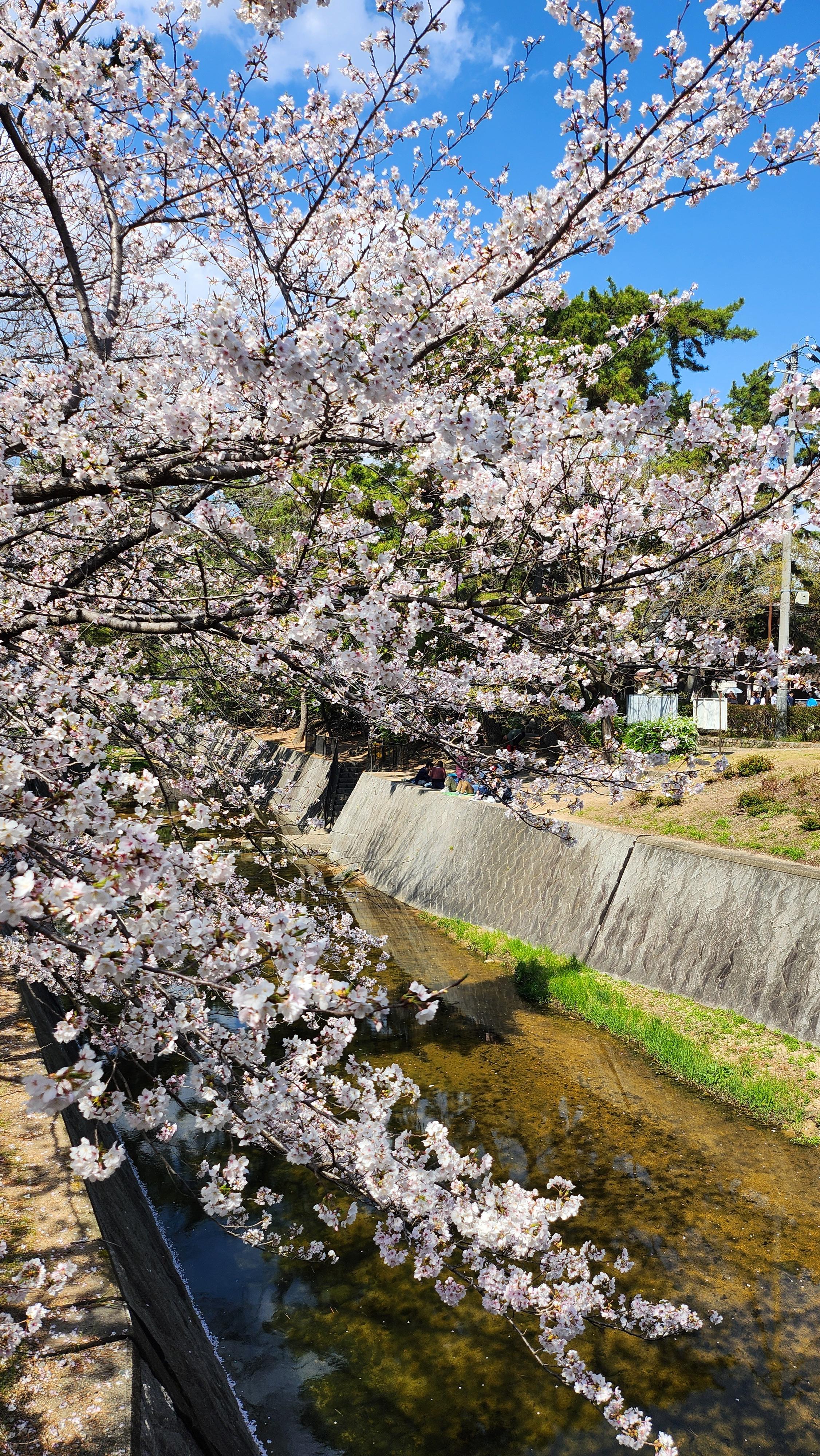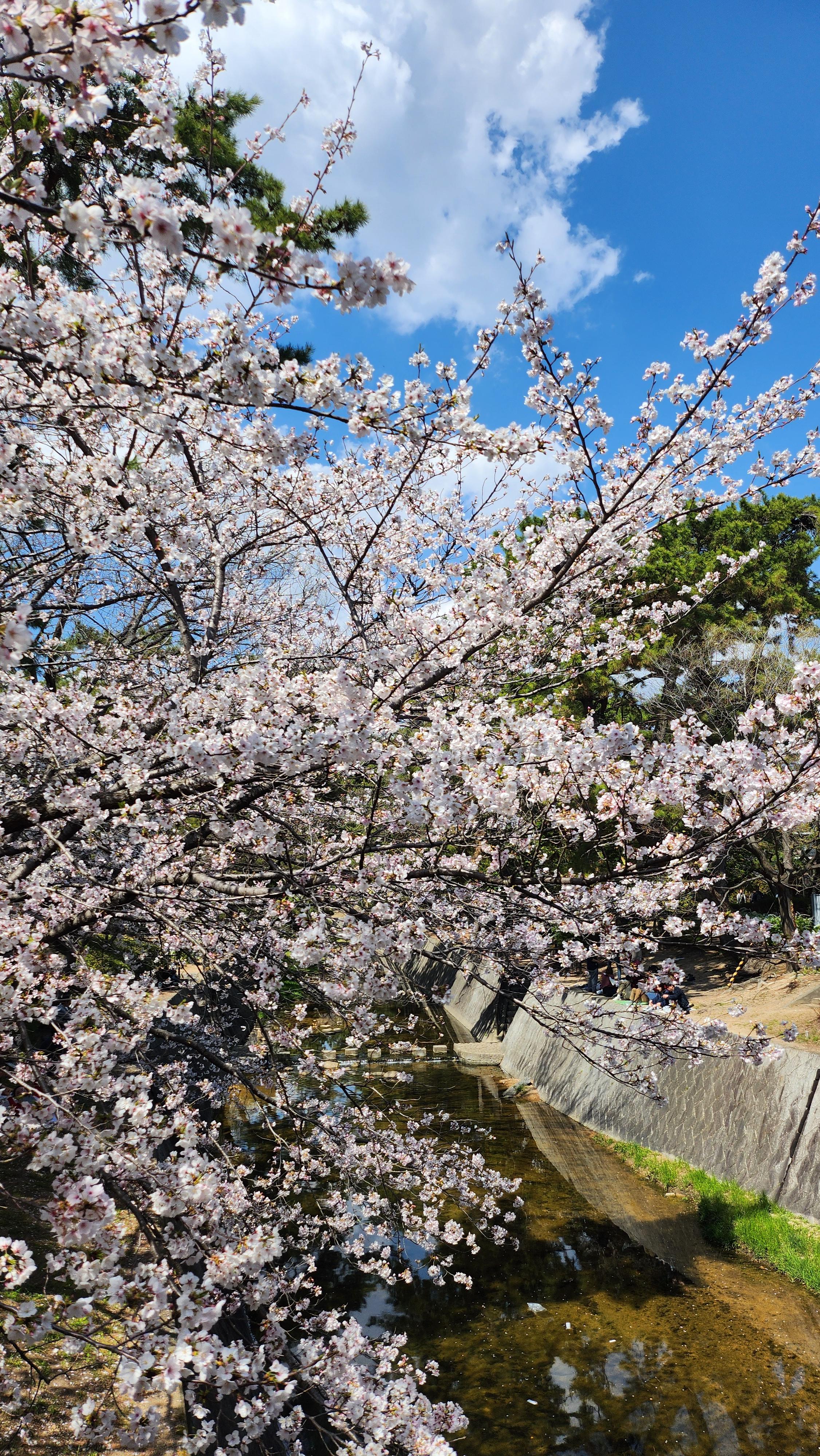 그 강을 따라 벚꽃이 피어 있어서 사람들이 많이 모이는 곳 중 하나입니다.