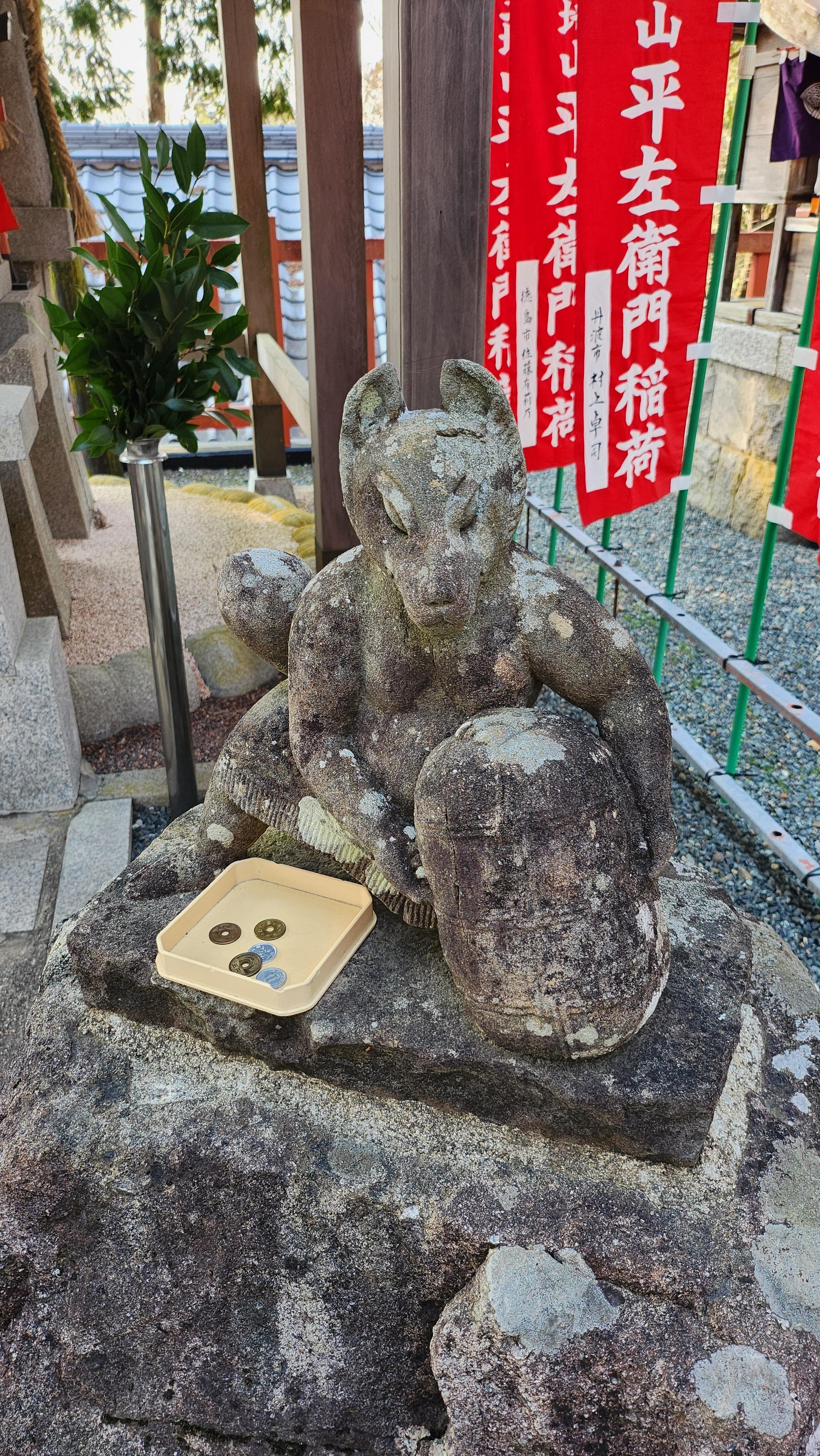 딱 적당하게 서 있는 토리이를 지나서 도착하는 본당 앞에는 사진과 같이 굉장히 늠름하고 힘 좋아보이는 여우가 있어요!