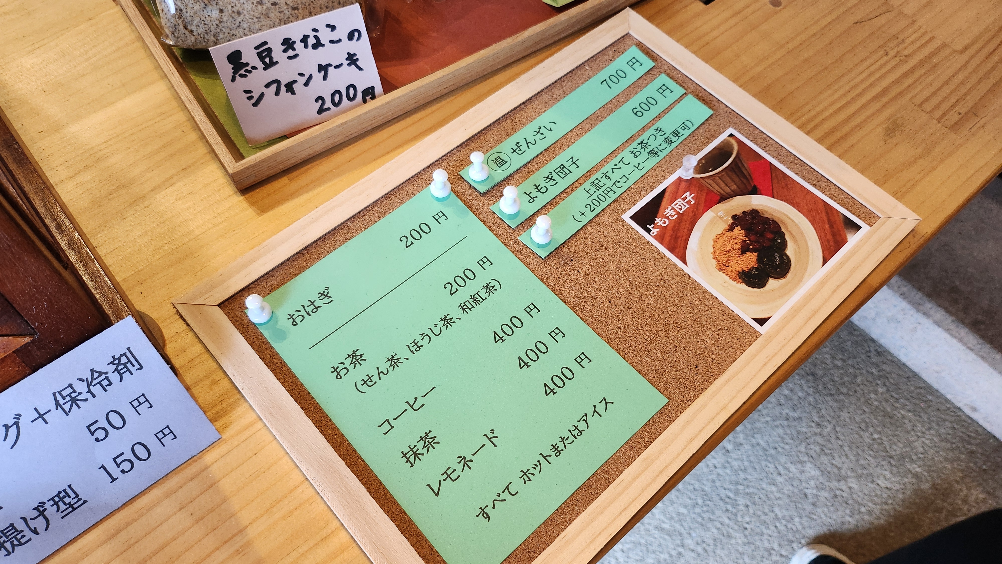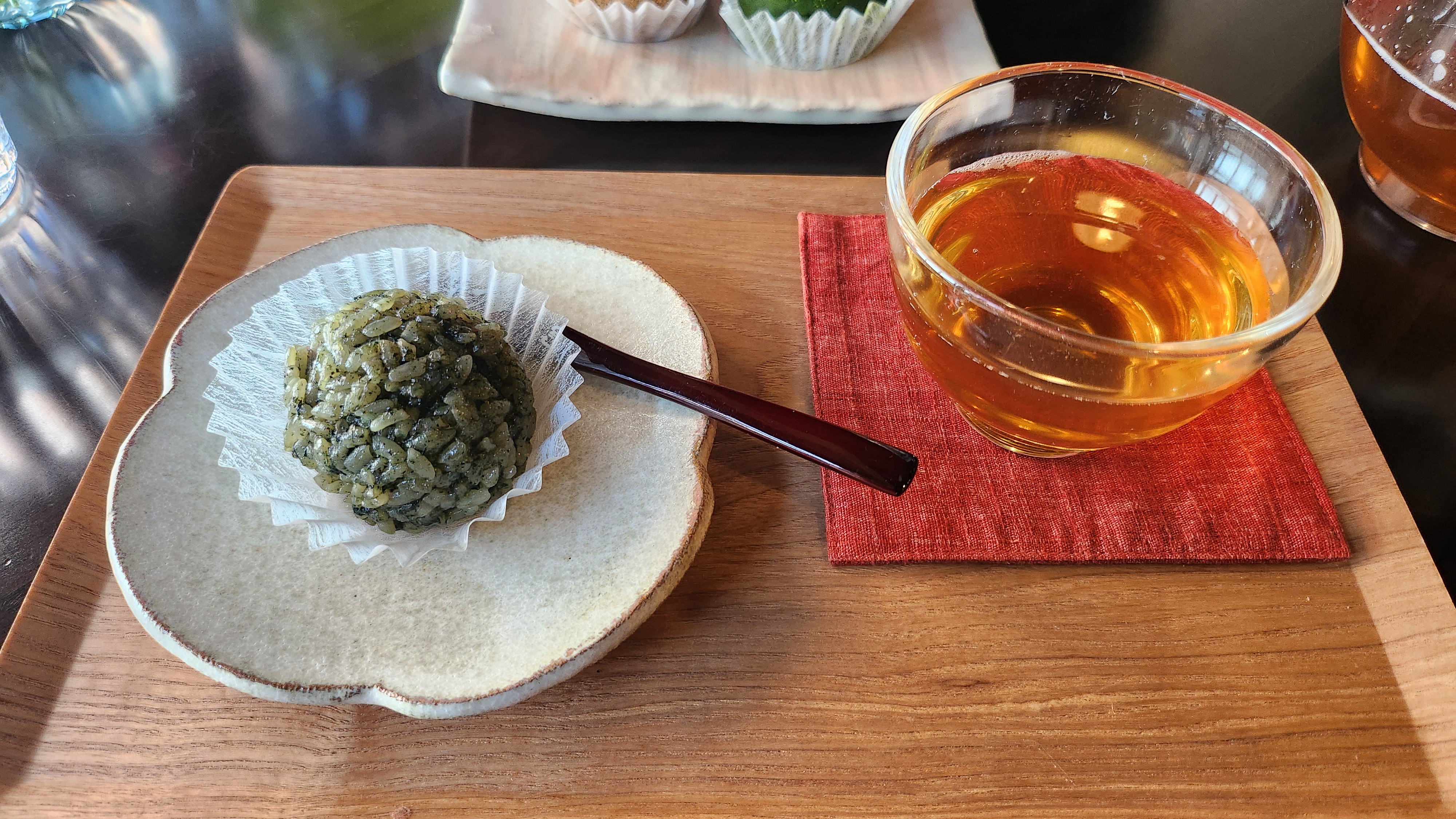 이날 사쿠라는 이미 솔드아웃이라서, 저는 제가 좋아하는 검은콩가루 오하기와 쑥 오하기, 그리고 호지차를 주문했습니다.