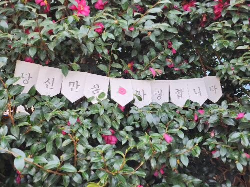 곳곳에 있는 동백과 함께 아기자가 하게 꾸며져 있었습니다.
