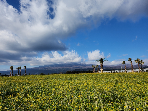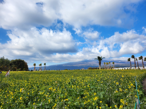 그리고!!!! 유채꽃밭 뒷쪽으로는 한라산도 보였는데요!