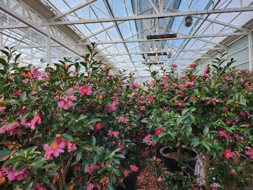 하얀색의 나무로된 온실(?)건물 안에도 동백이 가득 했습니다!