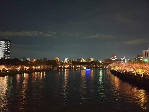 텐마바시에서 다리를 건너가면서 보이는 풍경입니다.