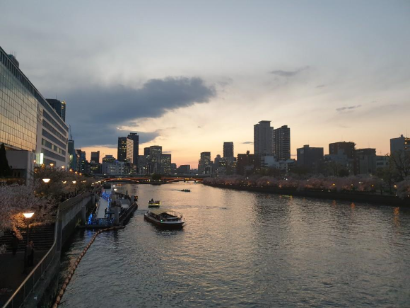 텐마바시에서 다리를 건너가면서 보이는 풍경입니다.
