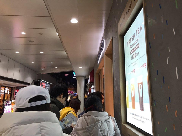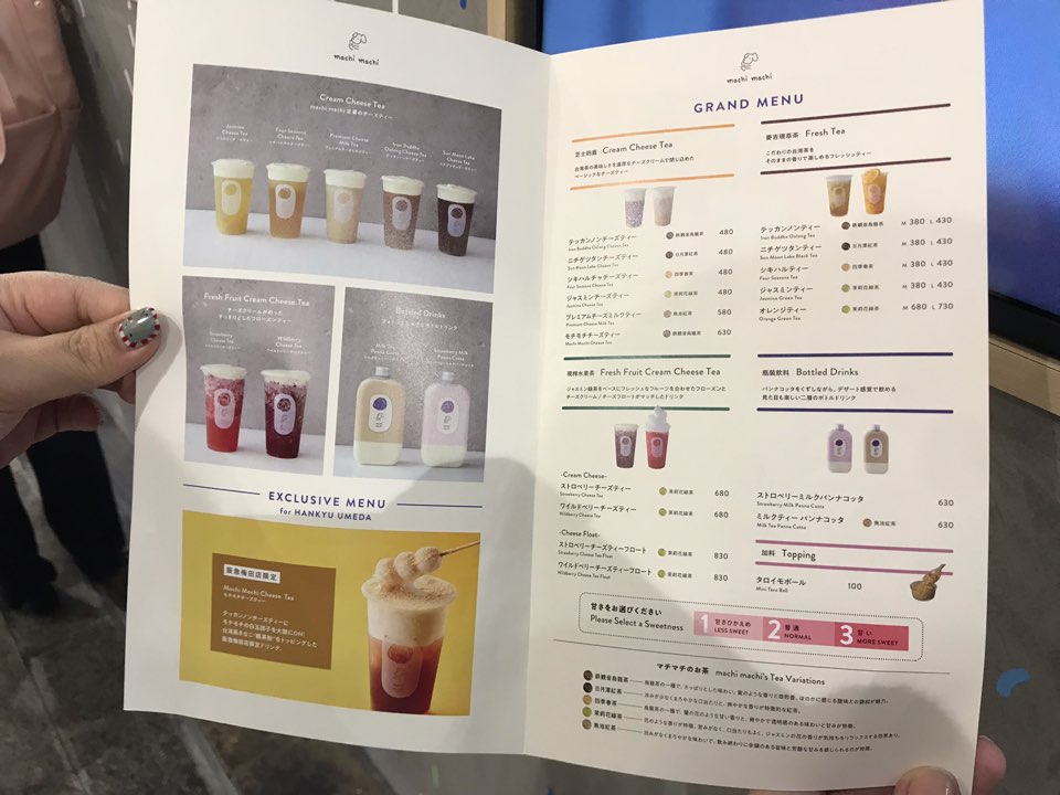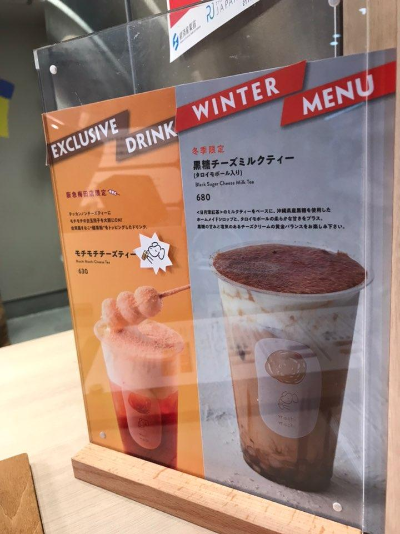 미니덕은 처음부터 겨울 한정 메뉴인 흑당 치즈밀크티를 마시고자 갔었는데, 한큐우메다점한정메뉴인 모치모치 치즈티도 신경이 쓰였습니다.