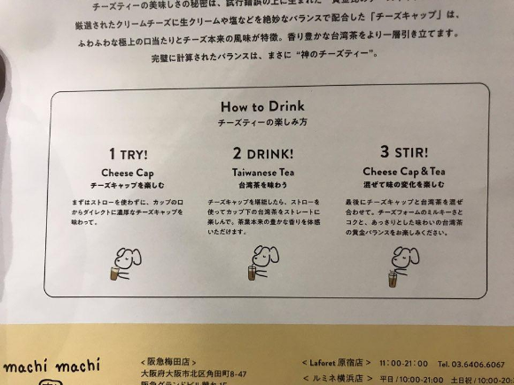 그리고 한쪽편에는 machi machi에 대한 간단한 설명(어떠한 가게인지)과 어떻게 마시면 맛있게 먹을 수 있는지 설명이 나와 있었습니다.