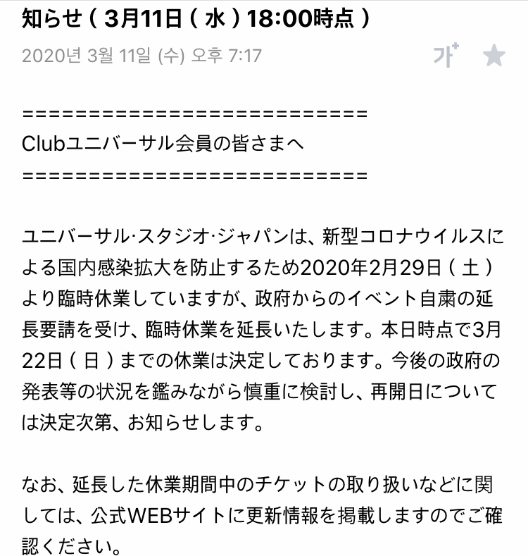 원래대로 라고 한다면 14일까지 임시휴업이었지만 정부의 방침에 따라 22일까지 휴업 일정을 연장하였습니다.