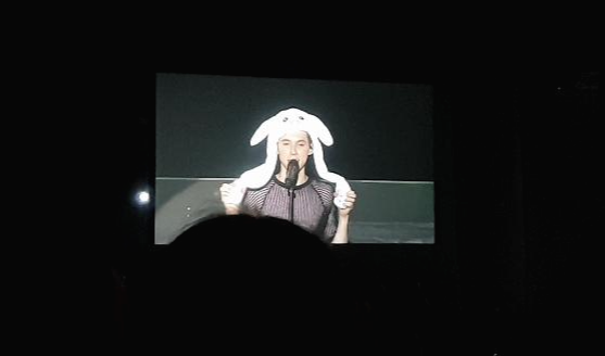 맨 앞에 있는 팬께 토끼귀 모자 받아서 팔랑팔랑 귀여운 모습도 보여주었습니다.
