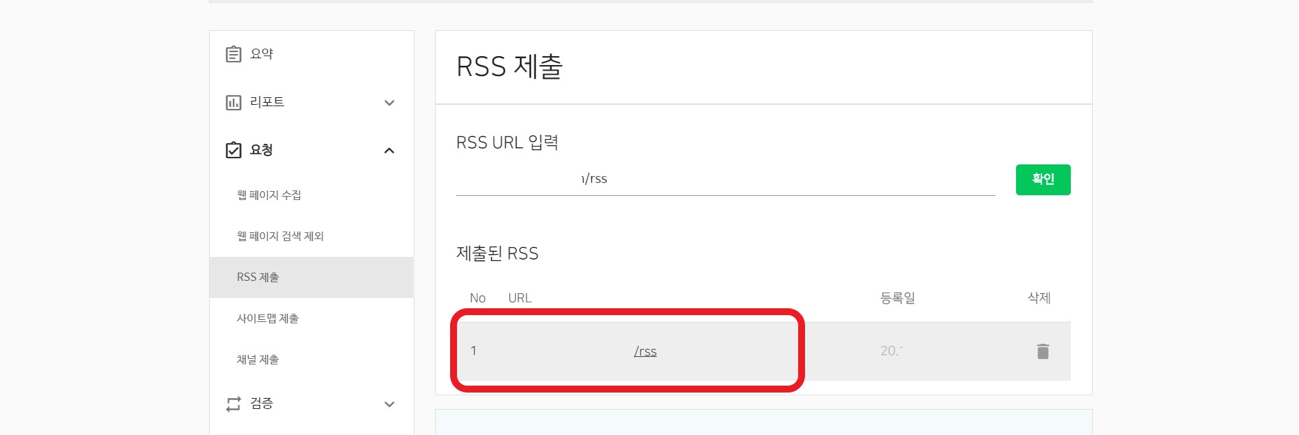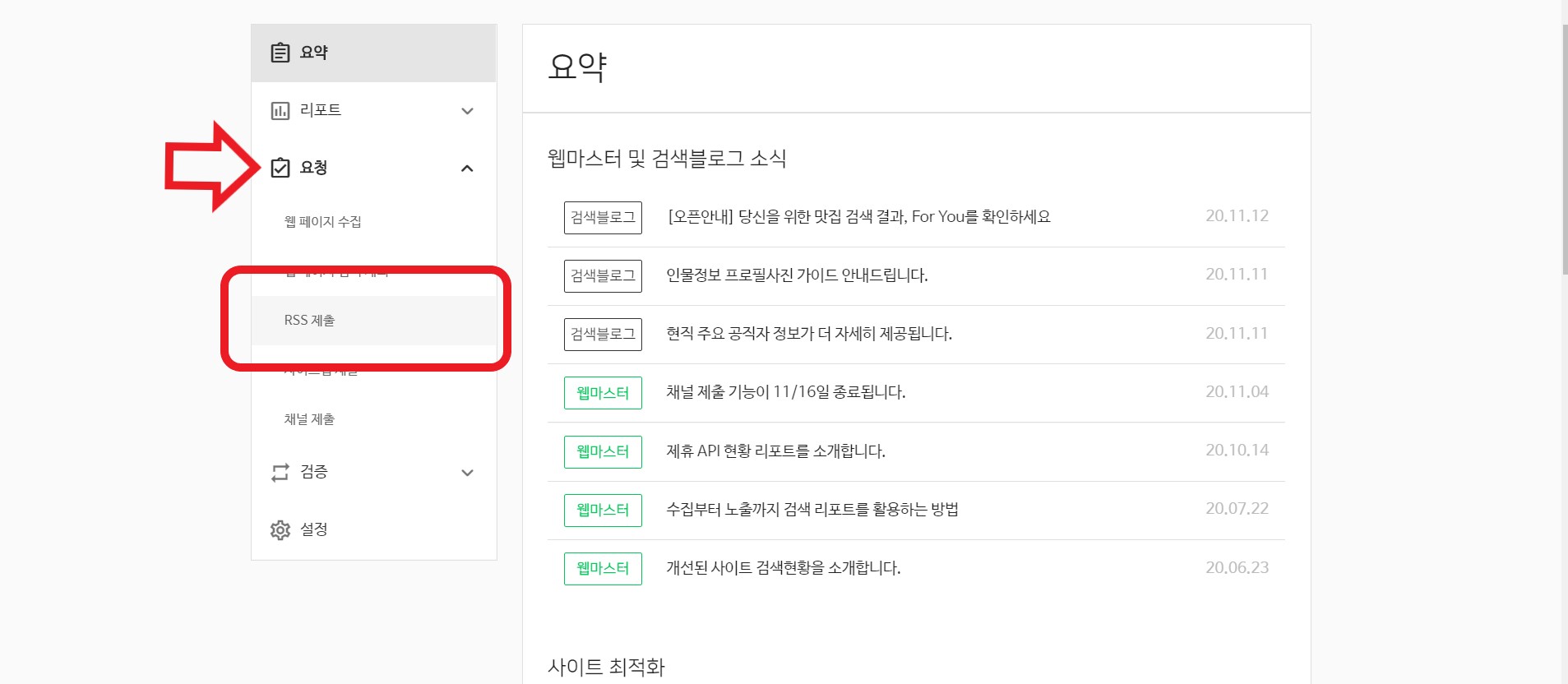 그러면 요청 > RSS제출을 클릭 해 주세요.