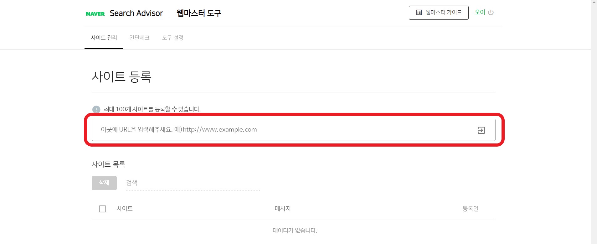 로그인 후에, 그 옆에 있는 웹마스터 도구를 누르시면 되는데요.