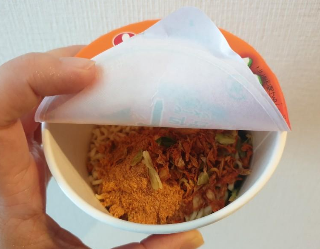 다 넣고, 뜨거운 물을 부운 후 3분간 기다려 줍니다.