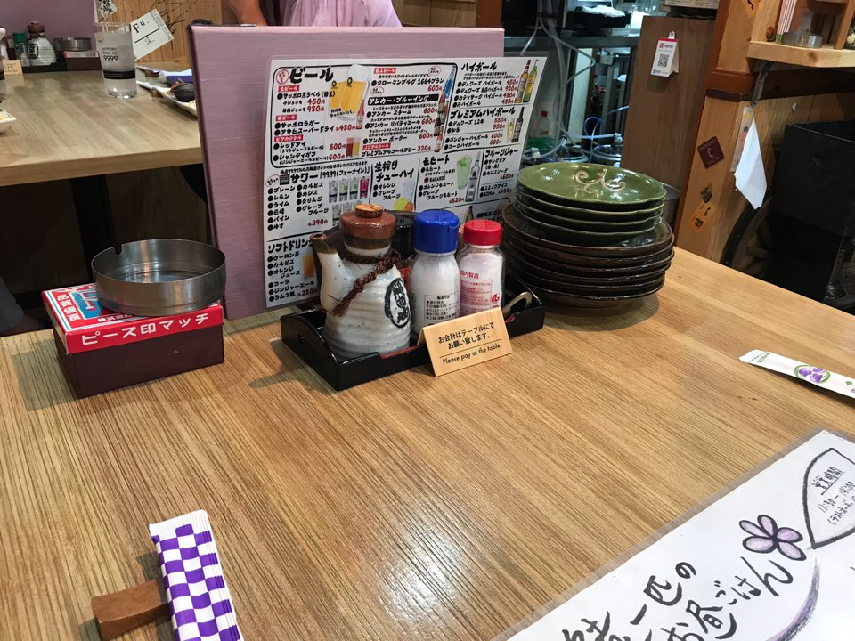 테이블에는 간장, 소금 같은 기본 조미료와 담배를 필 때 사용하는 용도로 성냥도 놓여있었는데 그 성냥이 너무 귀여웠습니다 ㅎㅎ