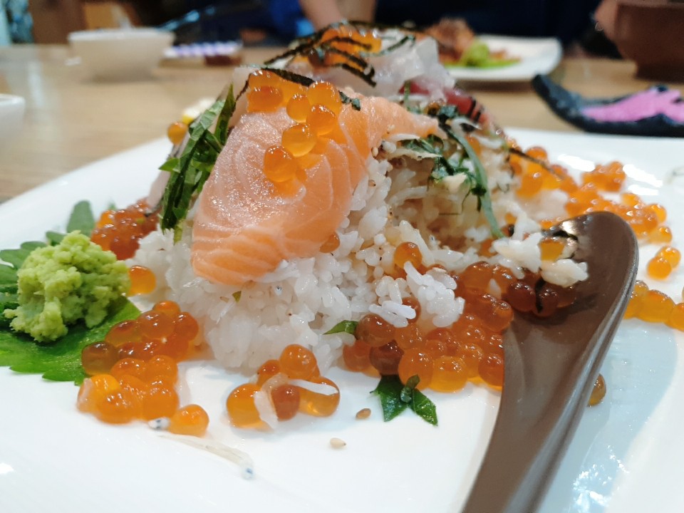 역시나 밥을 덮을 정도로 올려져 있는 연어가 너무 먹음직 스러웠어요.