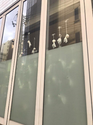 비가 그치게 해달라고 유치원 창문에 이렇게 원생들이 테루테루 보우즈를 걸어놓았더라구요.