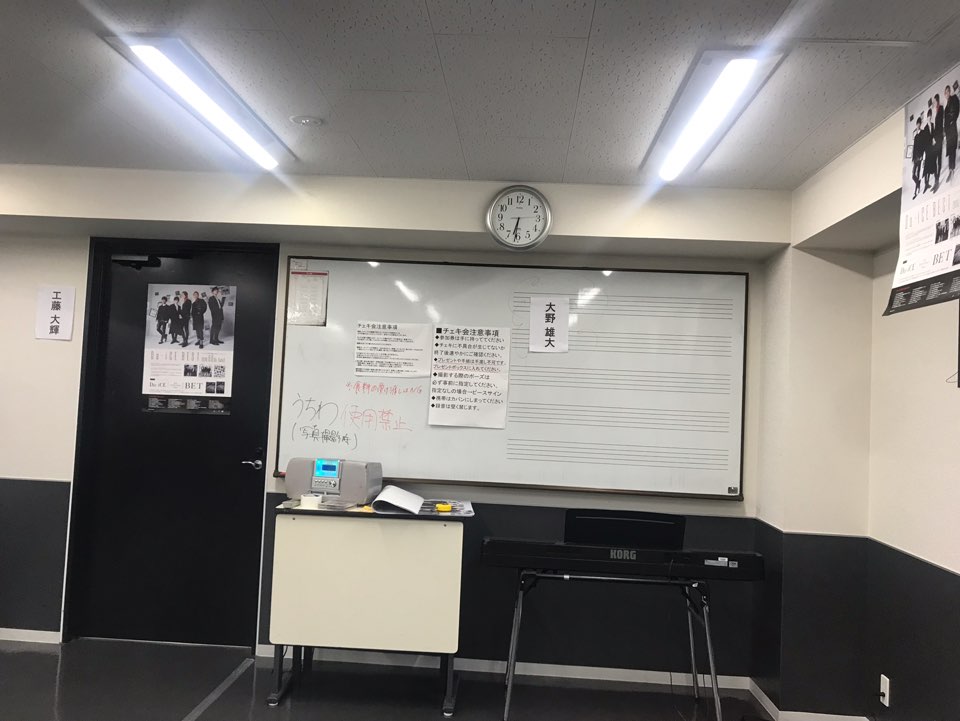 가방을 내려놓고, 유다이 옆쪽으로 섰는데 유다이가 틀어놓은 노래를 눈 마주치면서 열창을 했습니다.