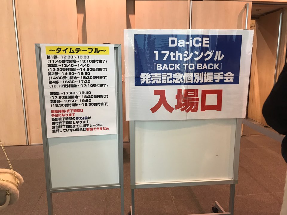 오늘은 지난 일요일(19일)에 다녀온 Da-iCE BACK To BACK 발매 기념 개별악수회 후기를 남겨볼까 합니다.