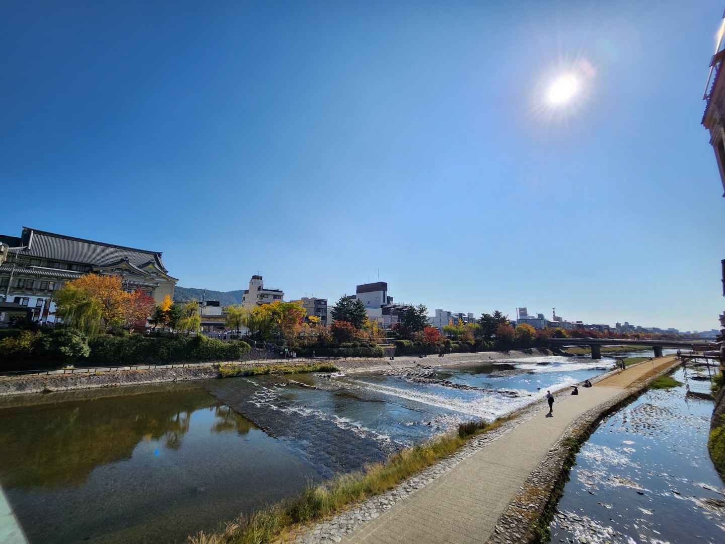 야무지게 카모가와를 건너주었어요!!! 약간 물들어 있는게 보이죠?!