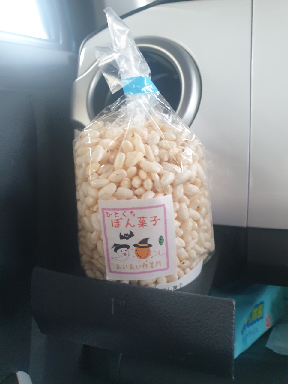 점심을 먹으러 가기 전에 들렸던 지역 상품 판매하는 곳에서 지역의 장애 시설에서 만드는 뻥과자를 판매하고 있었는데요!