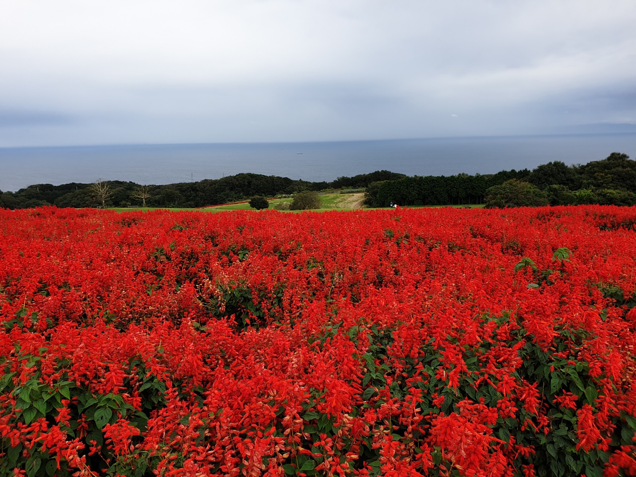 중간중간에 뱀, 독사 출몰 위험 안내가 있어서 긴장을 하기는 했지만 빨간색의 사루비아, 초록색의 잔디와 나무, 맑지는 않지만 구름과 하늘, 넓은 바다가 한눈에 펼쳐졌습니다.
