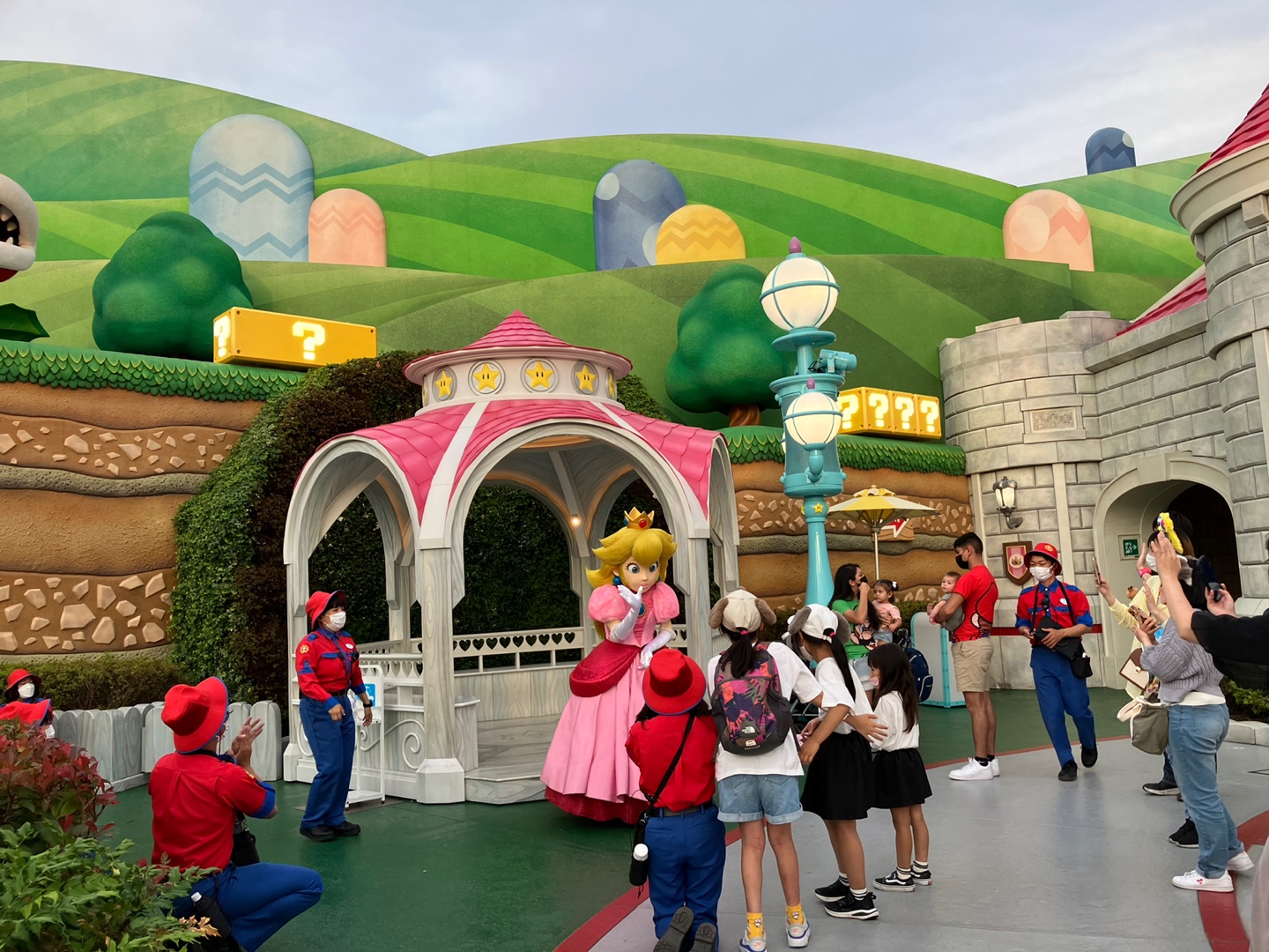 곳곳에서 마리오, 루이지, 키노피오, 피치공주가 사진을 찍어주고 있었어요.